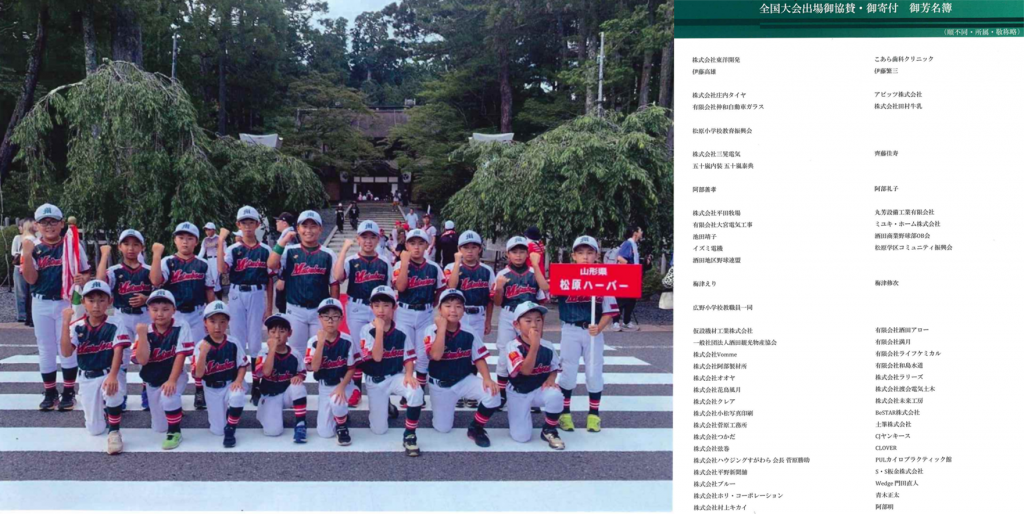 『第30回 高野山旗全国学童軟式大会』山形県代表 松原ハーバーへ寄付いたしました。