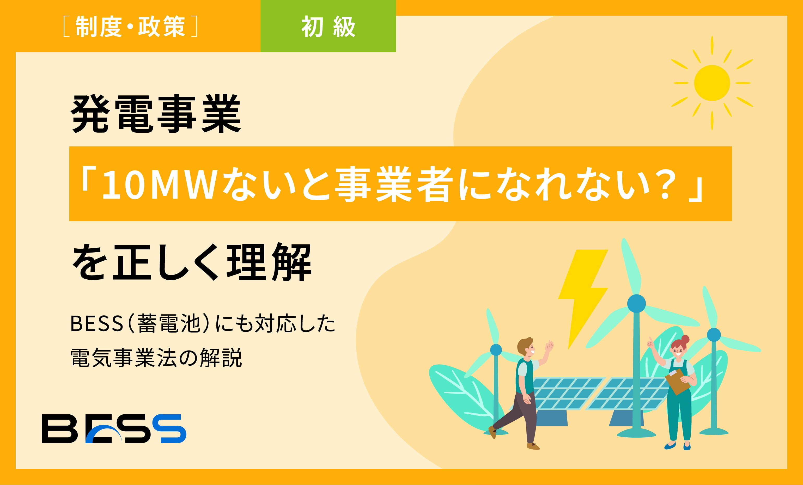 10MWは「届出要否」の基準であり、事業可否の線引きではありません。BESSの放電も発電に含まれ、10MW未満でも系統連系・売電は可能です。